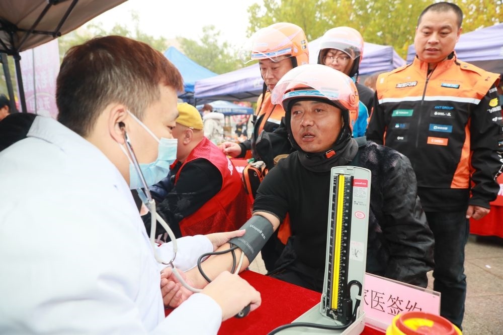 天津工會(huì)組織為新就業(yè)形態(tài)勞動(dòng)者提供義診、用藥指導(dǎo)等惠民服務(wù)。 新華社發(fā)