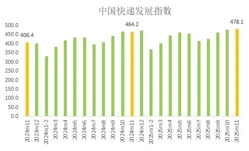 2023年11月-2025年11月中國快遞發(fā)展指數(shù)