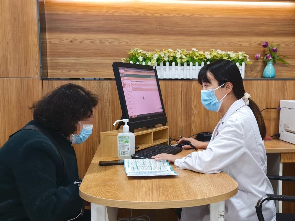 西安交通大學(xué)第二附屬醫(yī)院健康管理部醫(yī)師楊楠為患者解讀體檢項目。新華社發(fā)
