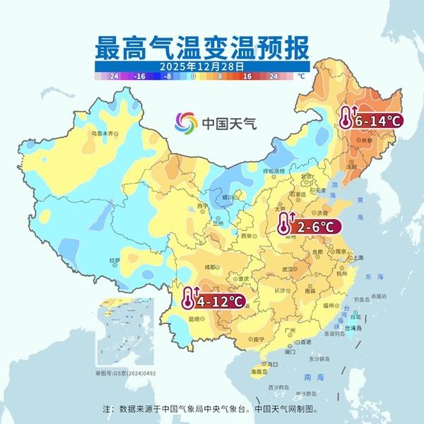 這場(chǎng)年尾超級(jí)大回暖正在席卷我國(guó)大部地區(qū),并將持續(xù)至29日。明后天,回暖幅度和范圍進(jìn)一步升級(jí),北方地區(qū)明天氣溫普遍達(dá)到高點(diǎn),南方地區(qū)將在后天(29日)前后迎來(lái)過(guò)程氣溫高點(diǎn)。其中明天,最高氣溫0℃線將同期少見(jiàn)地挺進(jìn)東北,并北抬至吉林中部,黃淮南部到江南普遍在15℃以上,華南也將重返20℃以上,短袖有了重新出場(chǎng)的機(jī)會(huì)。