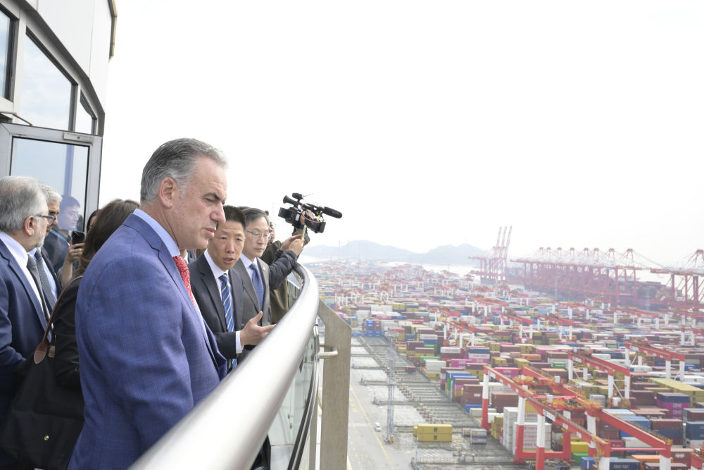 烏拉圭總統(tǒng)奧爾西2月5日參訪上海洋山港。新華社記者 高峰 攝
