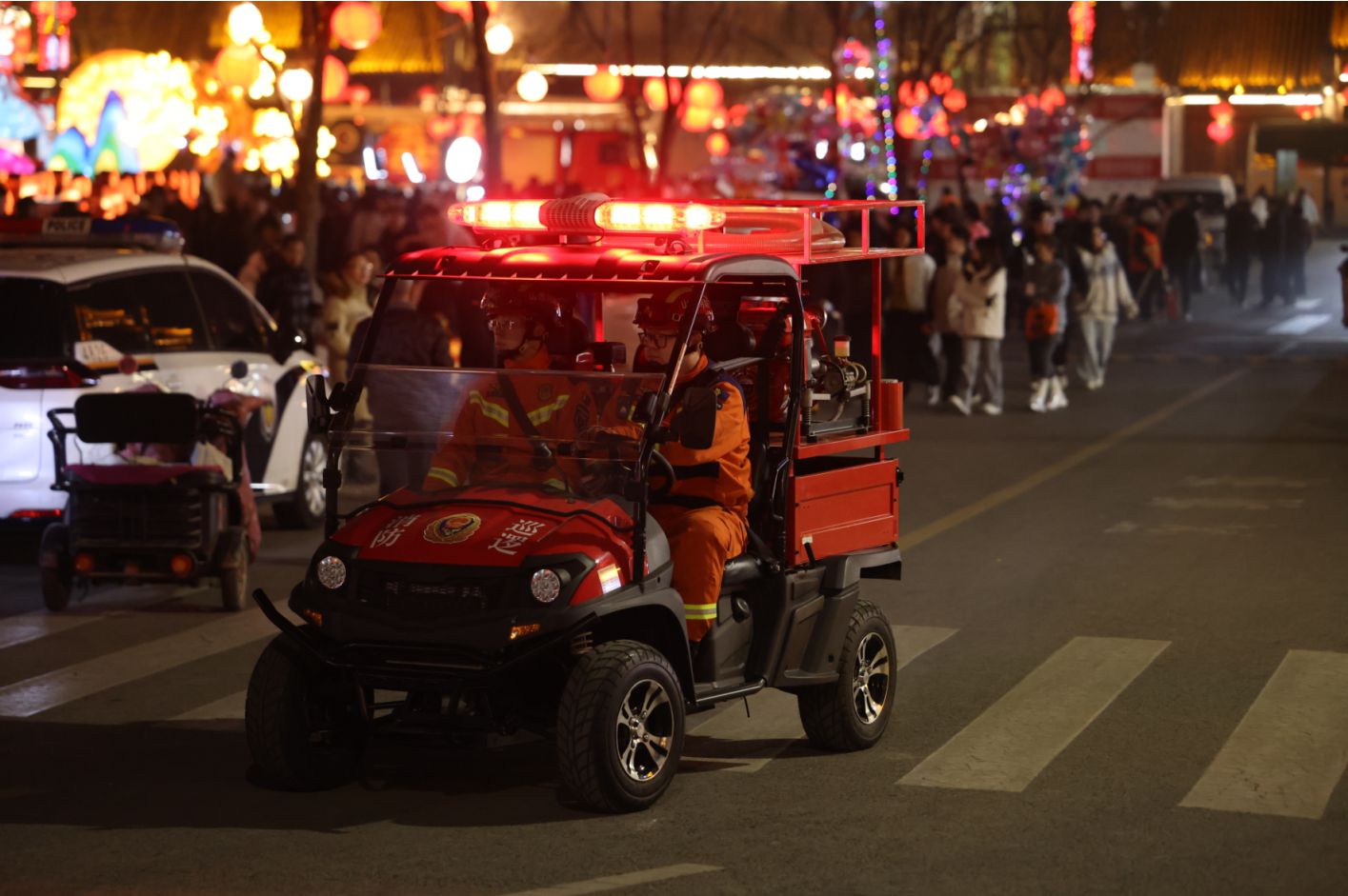 “春節(jié)期間,我們?nèi)珕T在崗,24小時輪班值守,確保每一秒都有人守護?!毙弥菔邢谰仍ш牴懦钦緢?zhí)勤負責人鄭澤宇介紹,支隊投入警力36人,16輛消防車,開展巡查值守和前置備勤兩種模式,三個固定執(zhí)勤點(北廣場、東大街、南廣場)五個巡查小組實行“雙人雙崗”制,每班配備滅火救援器材、應急保障物資,確保突發(fā)情況“1分鐘響應、3分鐘到場、5分鐘處置”。