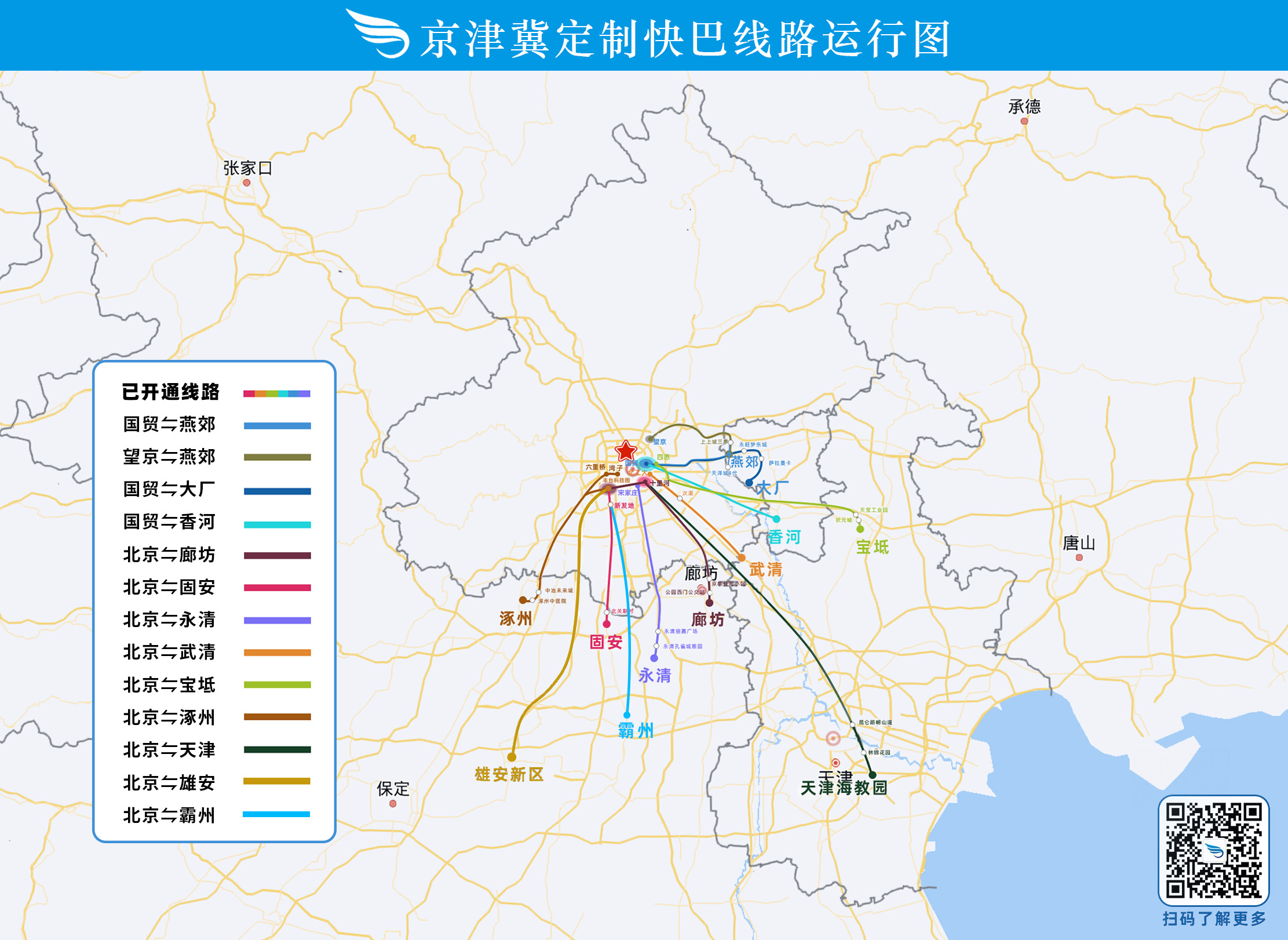 截至目前,京津冀定制快巴已開通北京地區(qū)至河北燕郊、大廠、香河、固安、永清、霸州、涿州、廊坊城區(qū)和天津武清、寶坻、海教園以及雄安新區(qū)等12條線路57條支線,共計(jì)開行16.3萬(wàn)余車次,客運(yùn)量累計(jì)超530萬(wàn)人次,日發(fā)315班次,日客運(yùn)量約9500余人次。