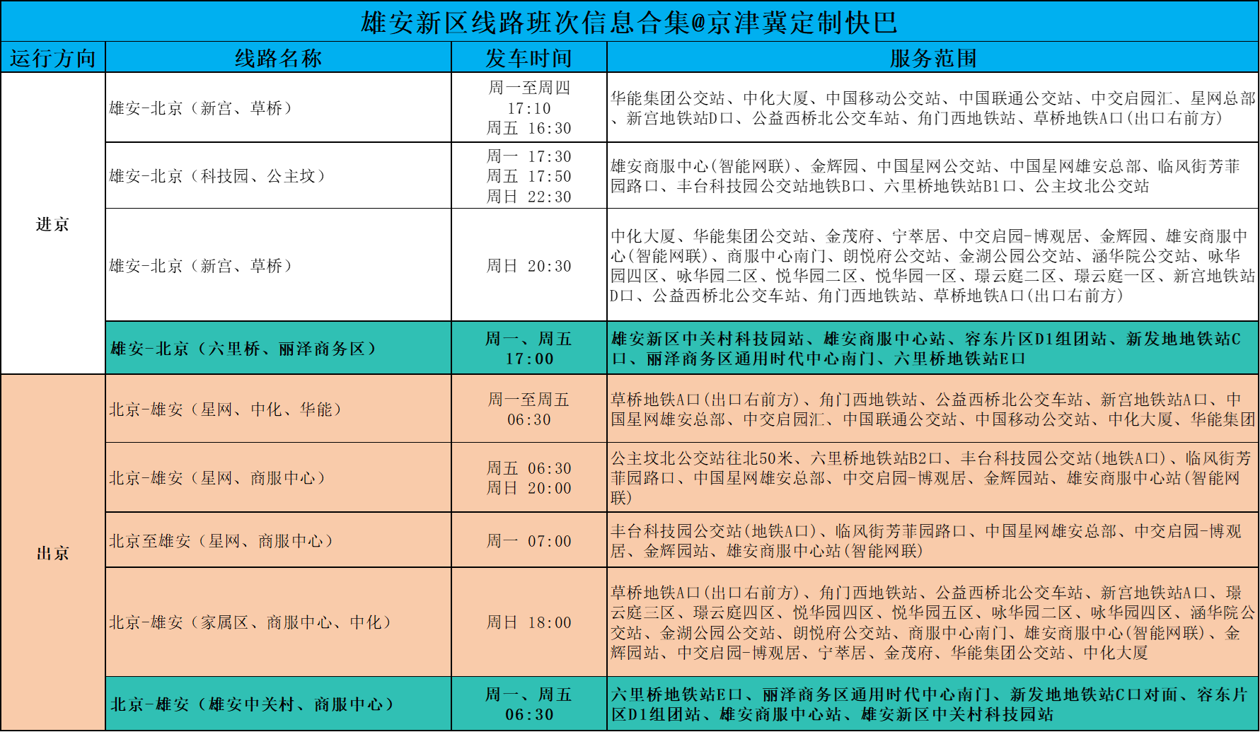 北京往返雄安線路聚焦通勤核心需求,站點(diǎn)覆蓋兩地關(guān)鍵交通樞紐及人員、產(chǎn)業(yè)密集區(qū)域。
