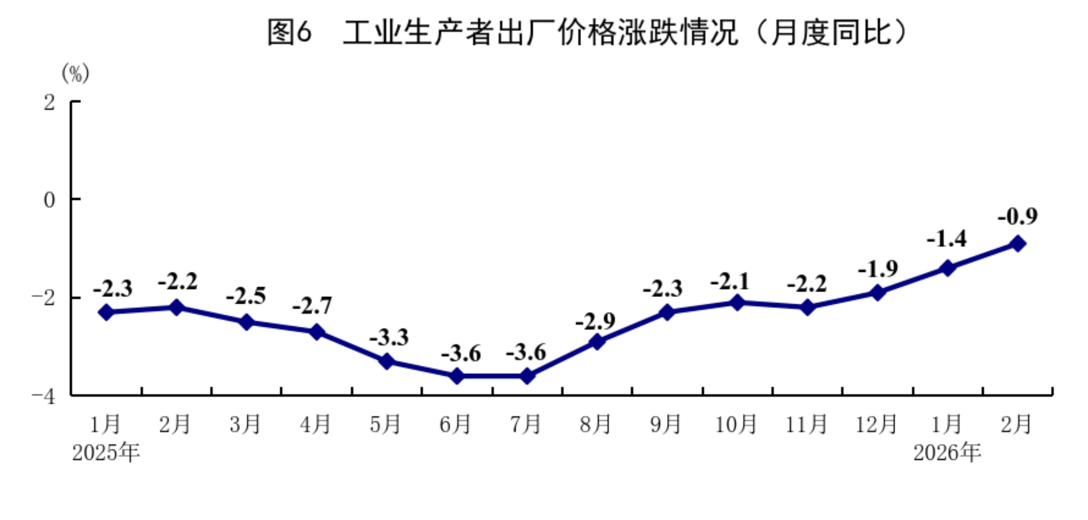 1—2月份,全國工業(yè)生產(chǎn)者出廠價格同比下降1.2%。分月看,1月份同比下降1.4%,環(huán)比上漲0.4%;2月份同比下降0.9%,環(huán)比上漲0.4%。1—2月份,全國工業(yè)生產(chǎn)者購進(jìn)價格同比下降1.1%。