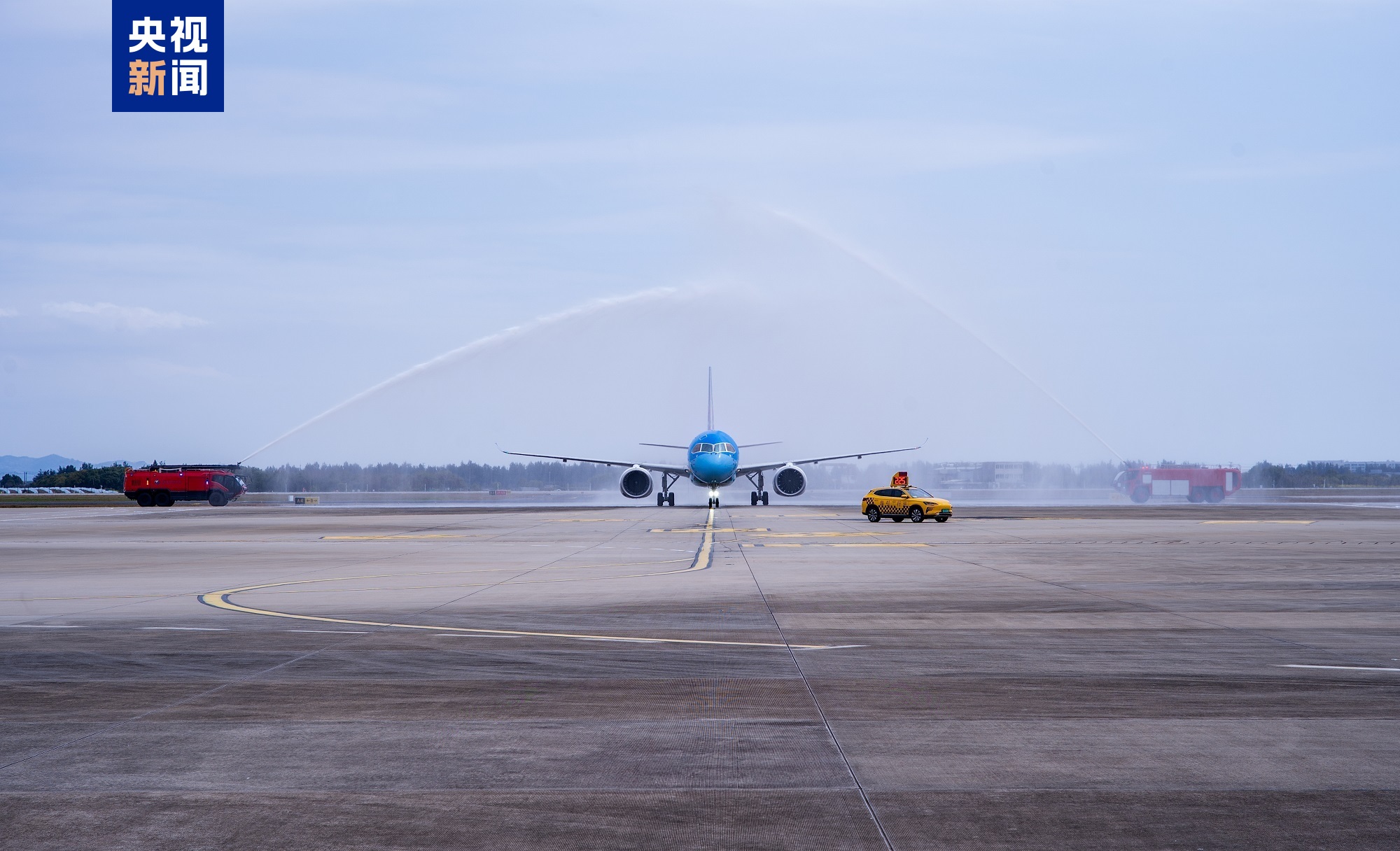 12時5分左右,飛機平穩(wěn)降落在溫州龍灣國際機場,緩緩穿過象征民航最高禮儀的“水門”,標志著國產大飛機C919在這條新航線上的常態(tài)化運營正式拉開序幕,接下來計劃每日執(zhí)飛廣州至溫州兩個往返航班。