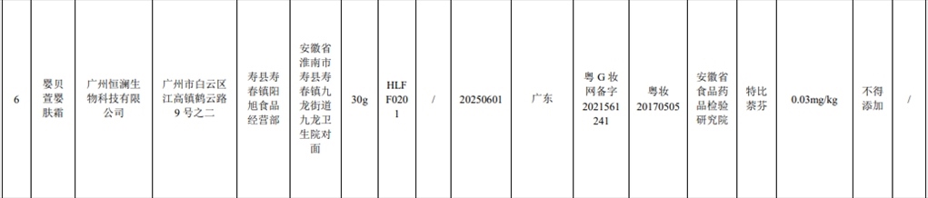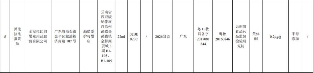 記者注意到,此次通報的7批次含禁用物質(zhì)化妝品,其中2批次是嬰童產(chǎn)品。產(chǎn)品標(biāo)簽標(biāo)示為金發(fā)拉比婦嬰童用品股份有限公司生產(chǎn)的貝比拉比蛋黃油被檢出含有黃體酮;產(chǎn)品標(biāo)簽標(biāo)示為廣州恒瀾生物科技有限公司生產(chǎn)的嬰貝萱嬰膚霜被檢出含有特比萘芬。
