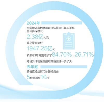 2024年,全國跨省異地就醫(yī)直接結(jié)算惠及參保群眾2.38億人次,成績來之不易。我國跨省流動人口數(shù)量大,如何更好滿足人民群眾的異地就醫(yī)需求,是一道必答題。近年來,各地各部門著力打通異地就醫(yī)的難點堵點,推出一系列實實在在的舉措,覆蓋范圍不斷擴大、慢特病病種進一步擴圍、經(jīng)辦服務(wù)持續(xù)優(yōu)化,人民群眾的獲得感不斷增強,笑容更多、心里更暖。