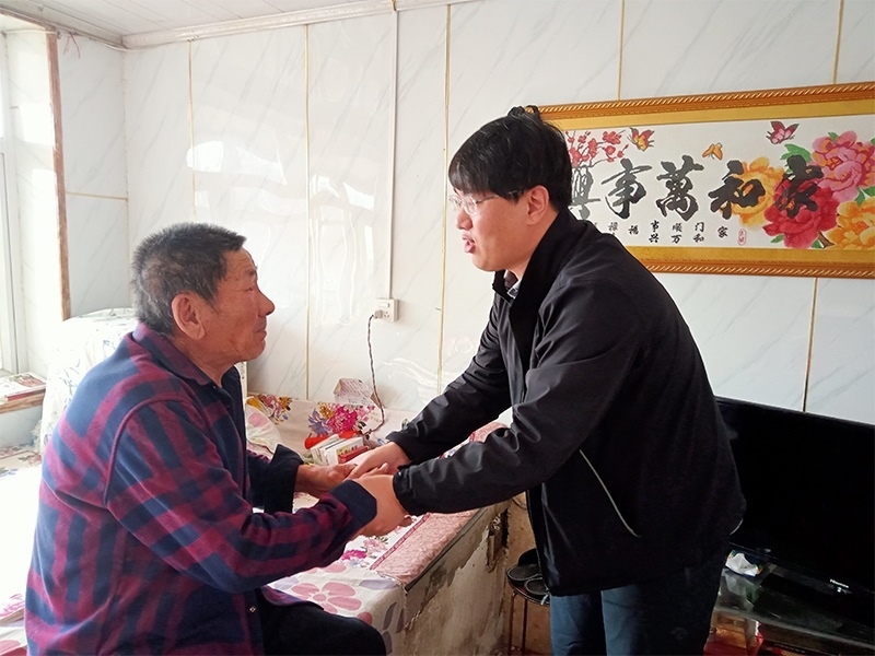 圖為駐村第一書記王寒到五保戶家中發(fā)放合作社收益資金醫(yī)療保險補貼。校方供圖