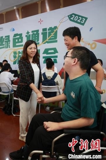東南大學(xué)校長(zhǎng)黃如歡迎董亦超的到來(lái),目前,東南大學(xué)已為董亦超安排無(wú)障礙宿舍。泱波 攝