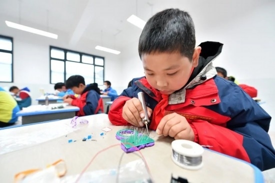 2023年12月14日,在湖北省襄陽市??悼h后坪鎮(zhèn)中心學(xué)校,學(xué)生們參加電子制作競(jìng)賽。通訊員 楊韜 黃玲 攝