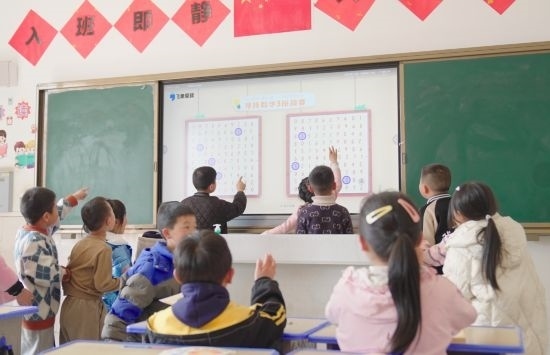 2023年12月20日,在云南省昭通市魯?shù)榭h卯家灣小學(xué),學(xué)生們通過智能雙師課堂,進(jìn)行《注意力專項(xiàng)訓(xùn)練》課程的大屏互動(dòng)。通訊員 鄭敬亭 攝