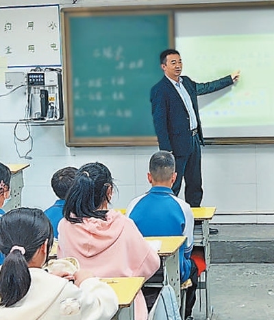 八仙中學(xué)校長(zhǎng)李強(qiáng)在給學(xué)生上課。本報(bào)記者 張丹華攝