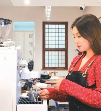 張妍在店內(nèi)制作咖啡。本文照片均由受訪者提供