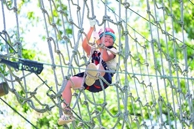 孩子在江蘇南京一家探險樂園體驗“樹上探險”活動。新華社發(fā)