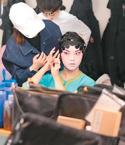 史欣玉對于演出扮相有嚴格的要求,她說:“我想盡可能地將戲曲完美呈現(xiàn)在觀眾眼前,讓大家一看就知道,我們的演出是專業(yè)的,因此妝造、舞臺效果都不能馬虎。我們每個人身兼數(shù)職,既要表演,也要學習妝造,互相幫忙完成扮相?!?/p>