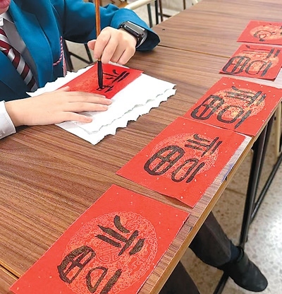 在馬耳他的一些校園中,春節(jié)的氛圍同樣濃厚。圣瑪格麗特中學(xué)“中國(guó)角”的師生們手握毛筆,全神貫注地書寫著春聯(lián)和福字;在馬耳他中文學(xué)校,學(xué)生們?cè)诳自豪蠋煹闹笇?dǎo)下,手指翻飛間,將紅紙化作一幅幅妙趣橫生的剪紙作品。