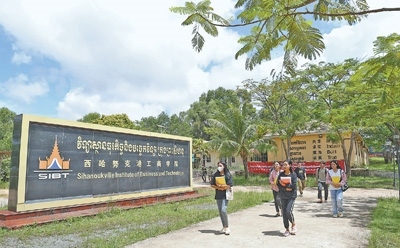 西哈努克港工商學院由柬埔寨西港特區(qū)公司聯(lián)合中國無錫商業(yè)職業(yè)技術學院共同創(chuàng)辦,是柬埔寨首個中文大學。圖為學生們行走在校園。