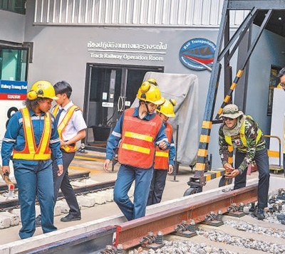 泰國春武里技術學院與中國多所鐵道學院保持技術交流。圖為軌道專業(yè)的學生們進行實操訓練。