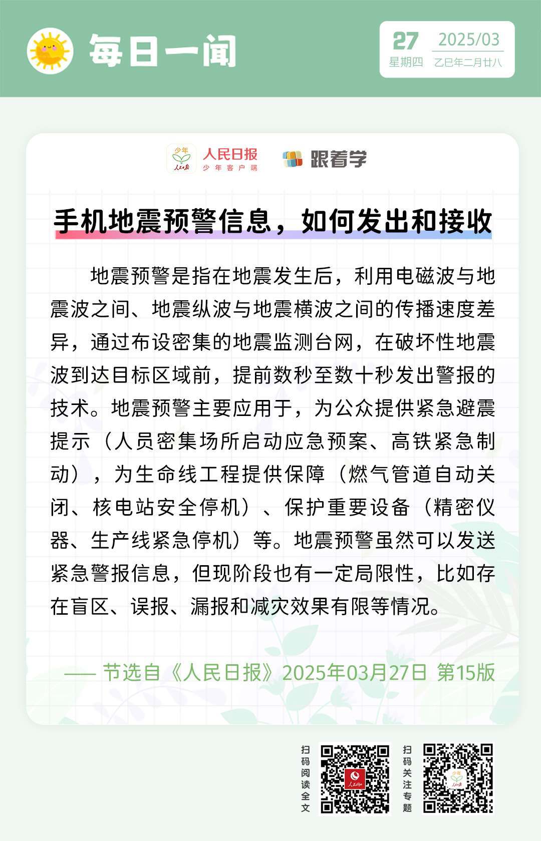 每日一聞丨手機地震預警信息,如何發(fā)出和接收