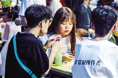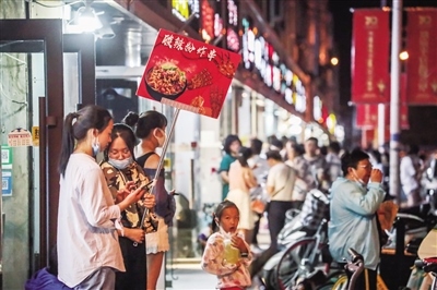 在中山西路,耀眼的霓虹燈點(diǎn)亮了城市最繁華的商業(yè)區(qū),人們摩肩接踵,這里聚集了更多的年輕人,他們一手緊握手機(jī),一手拎著美食,眼睛還不停地尋找更新奇的東西。“沒想到這么多人,感覺比過年的時(shí)候人還多?!薄拔覀兪窃诰W(wǎng)上看到這里開放夜市,所以約幾個(gè)朋友一起過來逛街的,沒想到這么熱鬧?!辈稍L中,無論是商戶還是市民,都為眼前繁華、熱鬧的場景欣喜。