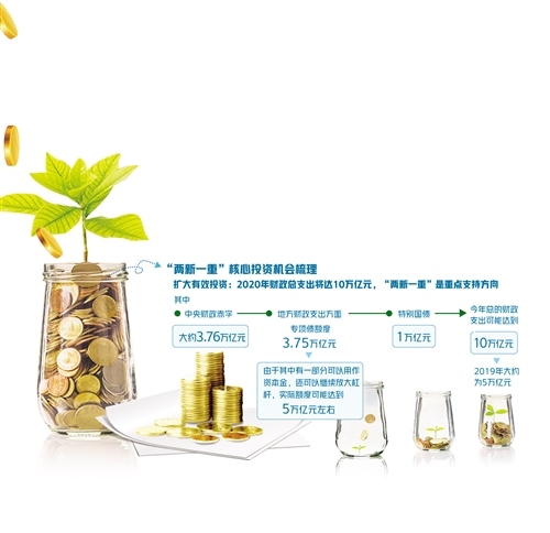 為重點支持既促消費惠民生又調結構增后勁的“兩新一重”建設,根據(jù)《政府工作報告》,今年特別安排地方政府專項債券3.75萬億元,比2019年有所增加;另有抗疫特別國債1萬億元,資金用途共涉及6個領域,其中有部分也指向“兩新一重”建設領域。