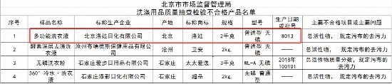 北京市市場監(jiān)督管理局:洛娃洗衣液抽檢不合格