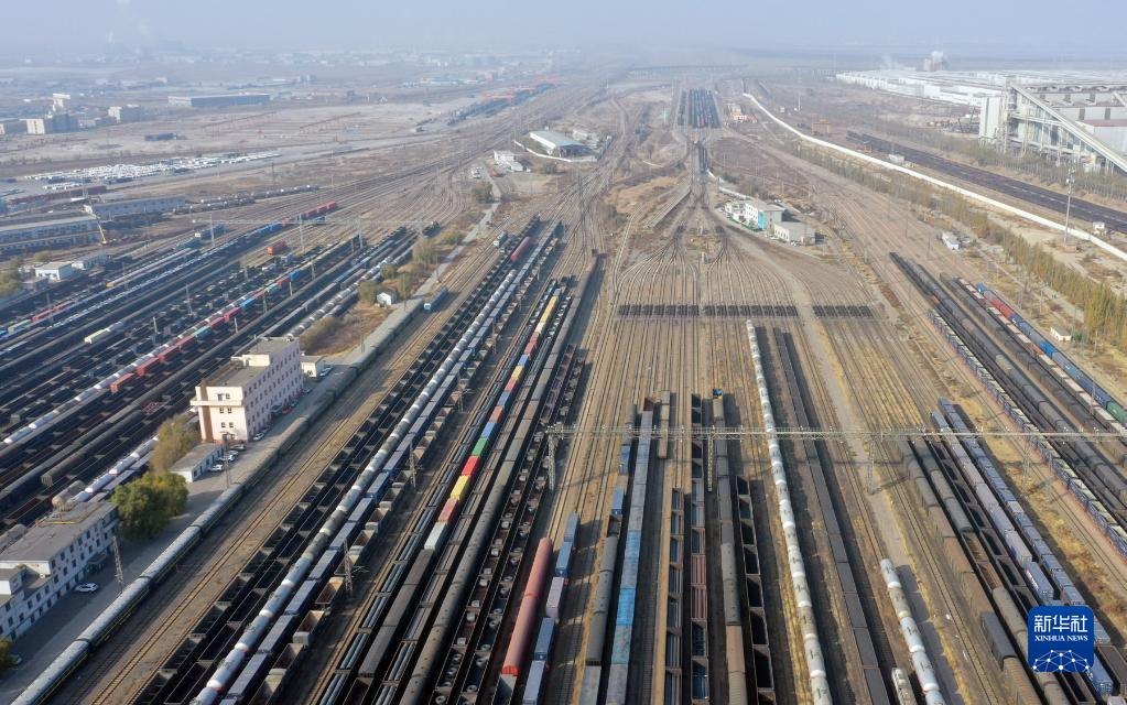 這是包頭西站運煤列車編組場(11月2日攝,無人機照片)。新華社發(fā)(夏亮攝)