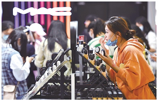 1月3日,顧客在??谌赵聫V場(chǎng)免稅店選購(gòu)化妝品。新華社記者 郭程 攝