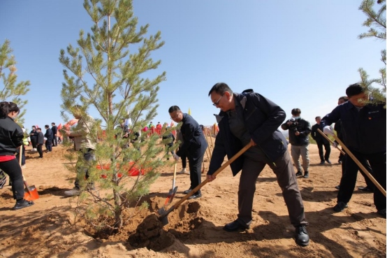 北疆新聞網(wǎng)、北疆新聞APP、北疆云消息(張博)黃河中上游沿岸,谷雨時(shí)節(jié),在庫(kù)布其沙漠和騰格里沙漠腹地,植樹(shù)擴(kuò)綠正隨著光伏治沙降碳而延伸,描繪著藍(lán)綠交織、水沙和諧、鄉(xiāng)村振興的工筆畫(huà)。4月22日是第53個(gè)世界地球日,也是第18屆庫(kù)布其植樹(shù)節(jié),蒙西基地庫(kù)布其200萬(wàn)千瓦光伏治沙項(xiàng)目現(xiàn)場(chǎng)、甘肅武威50萬(wàn)千瓦光伏治沙項(xiàng)目現(xiàn)場(chǎng)同步舉行大型植樹(shù)紀(jì)念活動(dòng),主題為“光伏治沙護(hù)河,庫(kù)布其降碳擴(kuò)綠與鄉(xiāng)村振興”,正式啟動(dòng)庫(kù)布其“十四五”1億棵碳匯林工程第二期種植。億利集團(tuán)董事長(zhǎng)王文彪表示:“‘十四五’期間,我們將在黃河流域的庫(kù)布其沙漠、烏蘭布和沙漠、騰格里沙漠的億利治沙區(qū)域建設(shè)上百公里治沙護(hù)河碳匯林帶,2021年已如期完成2000萬(wàn)棵種植任務(wù),2022年將繼續(xù)通過(guò)‘政策+產(chǎn)業(yè)+公益’的模式,實(shí)施光伏板下種植和沙漠生態(tài)種植,確保完成2000萬(wàn)棵種植任務(wù)。億利庫(kù)布其治沙科技和經(jīng)驗(yàn)?zāi)J揭沧呱狭宋鞑啬乔吆吆0蔚貐^(qū),成功種活了近40萬(wàn)株鄉(xiāng)土樹(shù)種,我們將加快推動(dòng)那曲城鎮(zhèn)植樹(shù)關(guān)鍵技術(shù)研發(fā)與綠化模式示范項(xiàng)目成果的規(guī)?;茝V?!被顒?dòng)現(xiàn)場(chǎng)全面啟動(dòng)了國(guó)家在庫(kù)布其沙漠規(guī)劃的退化林修復(fù)工程、蒙西基地2GW光伏治沙和甘肅武威500兆瓦光伏治沙項(xiàng)目板下生態(tài)種植工程、杭錦旗林草局和團(tuán)委保護(hù)母親河工程、螞蟻森林、大鉦資本庫(kù)布其沙漠雙碳公益林、鄂爾多斯中小企業(yè)庫(kù)布其公益林、杭錦旗工商聯(lián)林、杭錦旗稅務(wù)碳匯林等多個(gè)生態(tài)植樹(shù)項(xiàng)目。