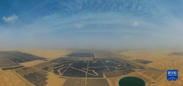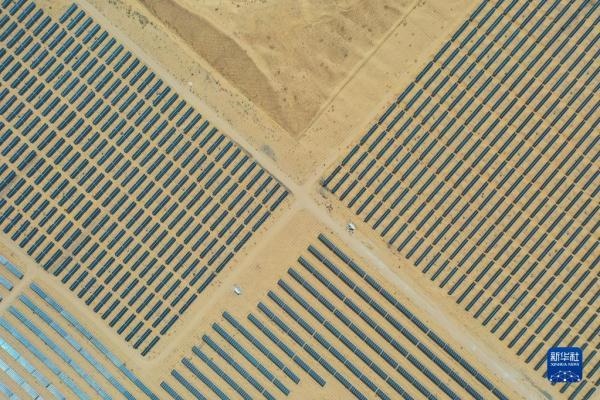 一匹占地130多萬平方米的沙漠“駿馬”橫臥在內(nèi)蒙古自治區(qū)庫(kù)布其沙漠之中,這是位于達(dá)拉特光伏發(fā)電應(yīng)用領(lǐng)跑基地中、由近20萬塊光伏板組成的“駿馬電站”。該電站采用“林光互補(bǔ)”模式,板上發(fā)電、板下種植,在開發(fā)利用庫(kù)布其沙漠豐富太陽能資源的同時(shí),推動(dòng)沙漠生態(tài)治理。