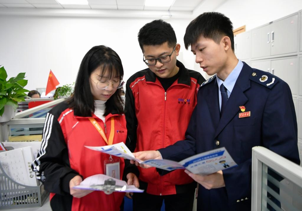 稅務(wù)工作人員向企業(yè)財(cái)務(wù)人員開展稅收政策輔導(dǎo)宣傳(新華社 發(fā))