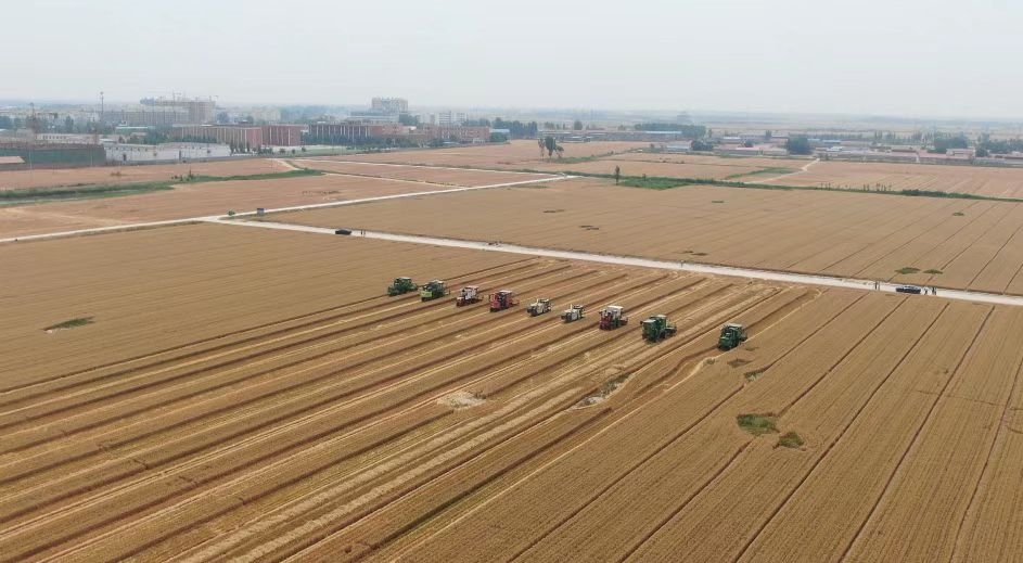 夏收時節(jié),在山東省德州市臨邑縣德平鎮(zhèn)大西關(guān)村的麥田里,幾臺收割機(jī)排成一排,轟隆隆地穿梭在金色的麥浪中。富民家庭農(nóng)場負(fù)責(zé)人魏德東指著剛收獲的小麥說:“畝產(chǎn)量將近1300斤,一畝地比往年增產(chǎn)了百十斤,不僅產(chǎn)量高,品質(zhì)也好?!?/p>