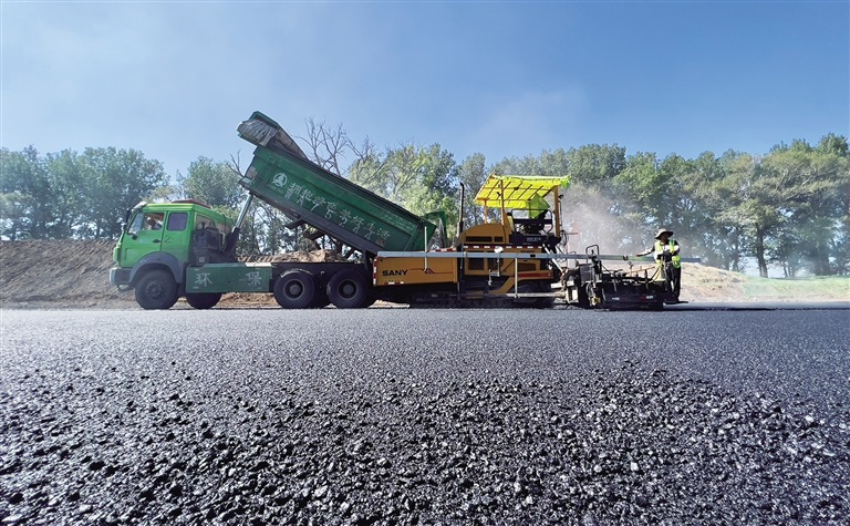 8月5日,施工人員正在鋪設(shè)瀝青。記者從中國二冶集團內(nèi)蒙古分公司和林格爾新區(qū)金盛快速路北段-杭蓋路連接線項目部了解到,該項目正在鋪設(shè)瀝青,同時進行智能交通以及道路交通標識標線施劃等工作,施工完畢后將于近日通車。該路段通車后,將有效緩解呼和浩特南部城區(qū)出城交通壓力,方便群眾出行。(記者 孟和朝魯 攝)