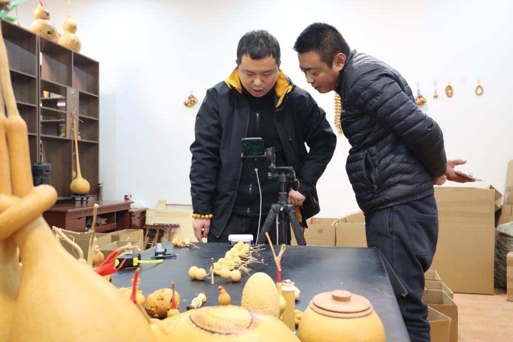 村民在直播賣(mài)葫蘆。新華社記者 張力元 攝
