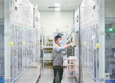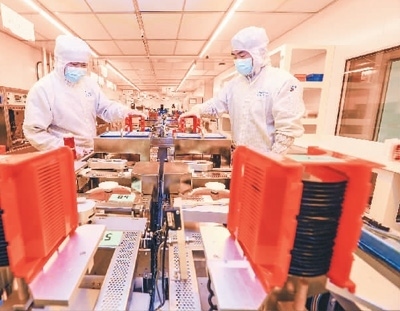 2023年2月16日,在安徽省馬鞍山市經(jīng)濟開發(fā)區(qū)檳城電子有限公司半導(dǎo)體芯片生產(chǎn)線上,職工在趕制應(yīng)用于5G基站上的半導(dǎo)體芯片。王文生攝(人民圖片)