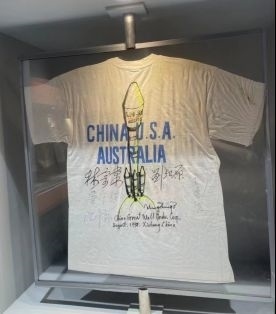 再給大家推薦一個不容錯過的“打卡點”:澳星發(fā)射成功紀念T恤。這件T恤全部都是著名航天老專家們的“親簽”:林宗棠(時任航空航天部部長)、劉紀原(時任航空航天部副部長)、沈辛蓀(時任中國運載火箭研究院院長)、王德臣(時任長二E火箭總設(shè)計師)、屠守鍔(時任長二E火箭技術(shù)總顧問)等。在紀念T恤的C位,還有劉竹生院士親筆畫的長征二號E運載火箭(即“長二捆”火箭)的漫畫圖。可謂眾“星”云集,珍貴程度可想而知。