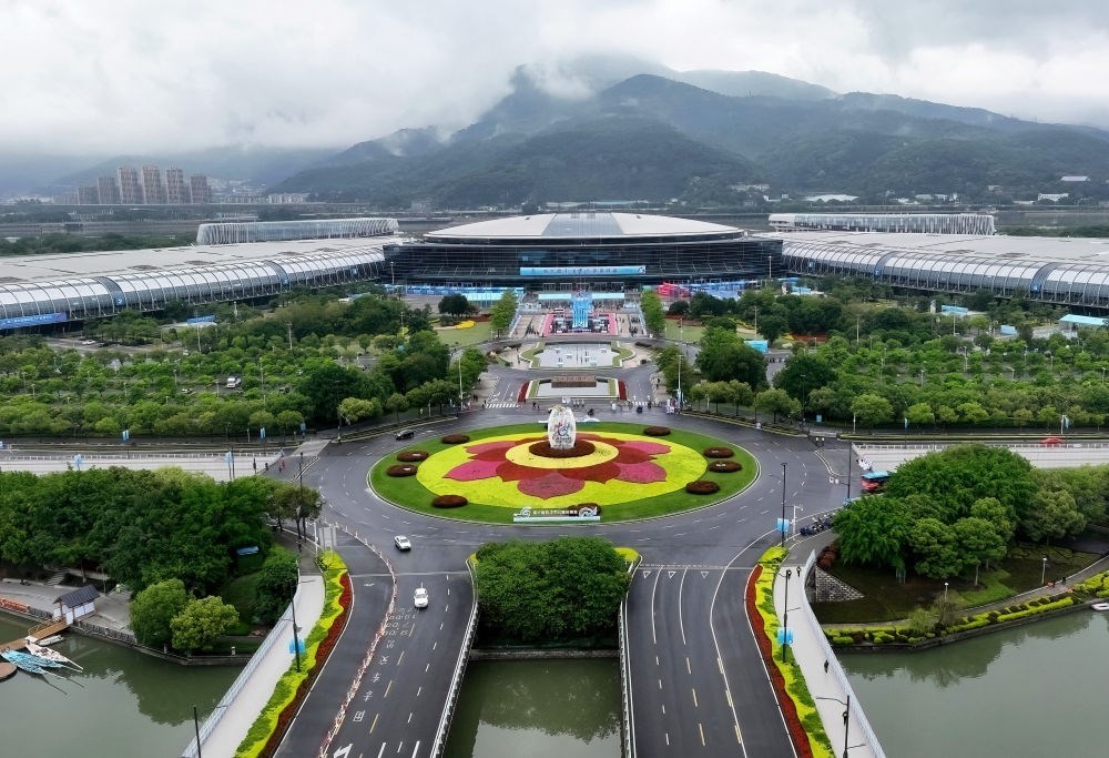 這是4月26日拍攝的第六屆數(shù)字中國(guó)建設(shè)峰會(huì)主辦地福州海峽國(guó)際會(huì)展中心外景(無人機(jī)照片)。新華社記者 魏培全 攝