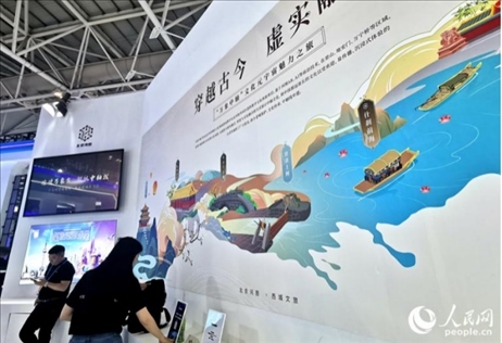 “我們對北京中軸線的場景進(jìn)行了復(fù)刻,構(gòu)筑了中軸線元宇宙,如果游客觀光北京中軸線上的打卡點,用手機掃描眼前的景色,就會出現(xiàn)現(xiàn)實與虛擬交織的場景,仿佛穿越古今,置身于千百年前的時空?!北本┖訄D公司工作人員陳頌在展會現(xiàn)場介紹說。