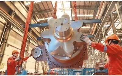今年以來,上海振華重工集團(tuán)(南通)傳動(dòng)機(jī)械有限公司銷售火爆、生產(chǎn)繁忙。1至4月,公司實(shí)現(xiàn)新簽合同額超5億元,完成營業(yè)額5.2億元,同比增長近40%,完成利潤同比增長70%。圖為工作人員在該企業(yè)裝配車間忙碌。許叢軍攝(人民視覺)