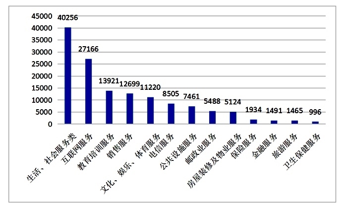 服務(wù)細(xì)分領(lǐng)域投訴前十位(單位:件)來源:中消協(xié)