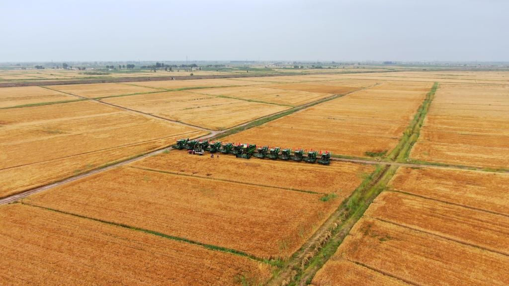 ??在金色麥浪涌動(dòng)的示范創(chuàng)意園內(nèi),10多臺(tái)聯(lián)合收割機(jī)依次駛?cè)胱鳂I(yè)區(qū)。種糧大戶(hù)王義說(shuō):“今年我種了1016畝小麥,小麥長(zhǎng)勢(shì)良好,麥穗大,顆粒比較飽滿(mǎn),每畝產(chǎn)量預(yù)計(jì)超過(guò)1000斤。”