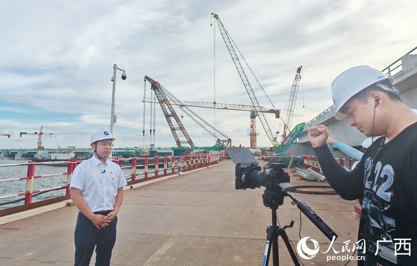 記者在防城港企沙港區(qū)赤沙作業(yè)區(qū)采訪。人民網 朱曉玲攝
