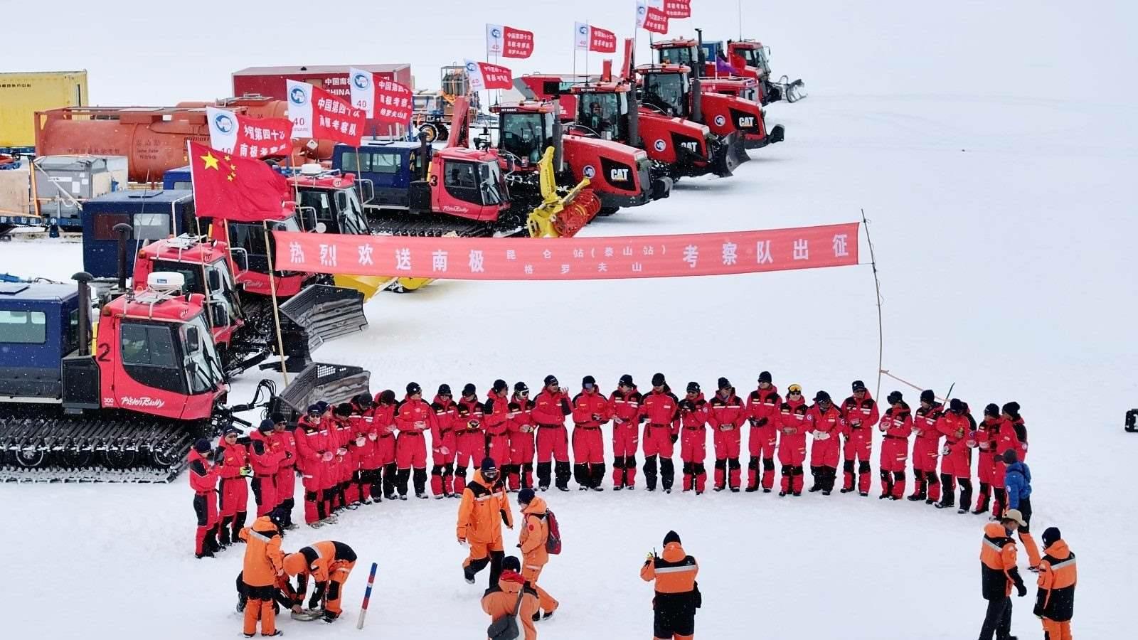 本次內陸隊包括昆侖站(泰山站)隊和格羅夫山隊。其中昆侖站(泰山站)隊由20名隊員組成,他們將途徑泰山站,抵達位于南極冰蓋最高點、海拔4087米的昆侖站,開展冰川學、天文學、地質學、地球物理學等科學考察。格羅夫山隊由9名隊員組成,他們將行進460余千米,前往平均海拔超過2000米的格羅夫山地區(qū)開展地質調查、冰芯鉆探、隕石搜尋等科學考察。