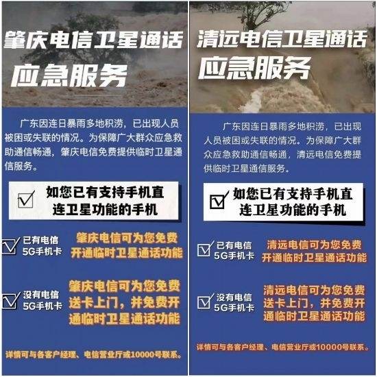 “如您有支持直連衛(wèi)星功能的手機,電信可免費為您開通臨時衛(wèi)星通話功能?!边B日來,這則救災應急通信的消息在受災地區(qū)傳播,為迅速解決受災地區(qū)通信困難問題,廣東電信肇慶、清遠、韶關等地分公司對外緊急推出免費衛(wèi)星通信保障服務,凡是具備衛(wèi)星功能的手機,都可以免費開通衛(wèi)星功能,撥打衛(wèi)星電話。地面通信中斷期間,韶關江灣鎮(zhèn)朱鎮(zhèn)長第一時間通過天通衛(wèi)星電話撥通了市應急廳電話,與外界取得聯(lián)系,通報災情。據統(tǒng)計,20日-23日期間,受災區(qū)域衛(wèi)星通話用戶數達1641戶,通話次數超4305次,天通衛(wèi)星電話發(fā)揮了應急通信的保底作用。