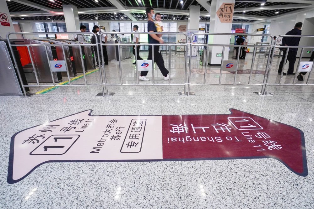 2023年6月24日,乘客在蘇州軌道交通11號線花橋站進站乘車。當日,蘇州軌道交通11號線正式投入運營,并與上海軌道交通11號線實現(xiàn)無縫換乘,長三角核心城市間首次實現(xiàn)地鐵系統(tǒng)跨省互聯(lián)互通。新華社記者 李博 攝