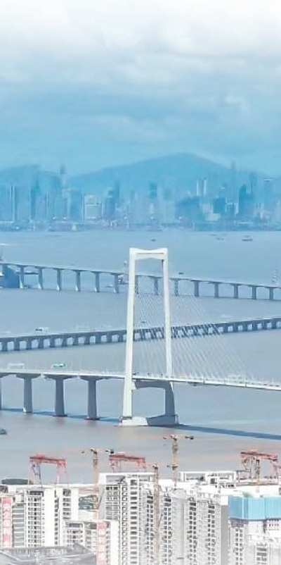 伶仃洋上壯觀的深中通道。付海燕攝(人民視覺(jué))