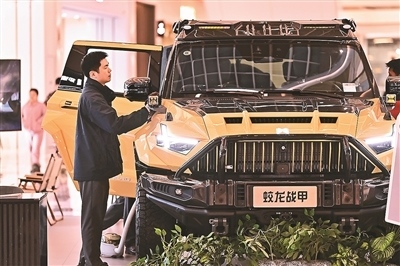江西省南昌市構(gòu)建集智能網(wǎng)聯(lián)、銷售服務(wù)于一體的商超新能源汽車業(yè)態(tài)圈,促進(jìn)地方新能源汽車消費(fèi)。圖為顧客在南昌市紅谷灘區(qū)的一家大型商場(chǎng)的汽車展示銷售區(qū)咨詢選購(gòu)新能源汽車。
