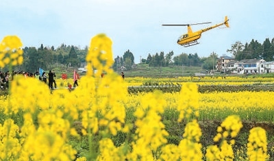 4月以來,四川省崇州市的30萬畝油菜花競(jìng)相綻放,從空中俯瞰,將會(huì)帶來不一樣的感受。為此,當(dāng)?shù)亻_通了“低空航線”,游客在半小時(shí)的低空飛行中,不僅可以俯瞰一望無際的油菜花海,還能欣賞附近錯(cuò)落有致的民居庭院。此外,當(dāng)?shù)剡€推出花海跳傘項(xiàng)目,將極限運(yùn)動(dòng)融入賞花,帶給游客別樣的體驗(yàn)。