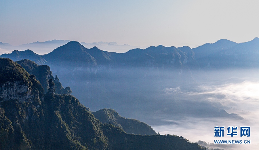 近日,一場春雨過后,重慶金佛山東麓小指姆山出現(xiàn)平流霧,仙氣彌漫,讓人直呼“仙山”本山!新華網(wǎng)發(fā)(瞿明斌 攝)